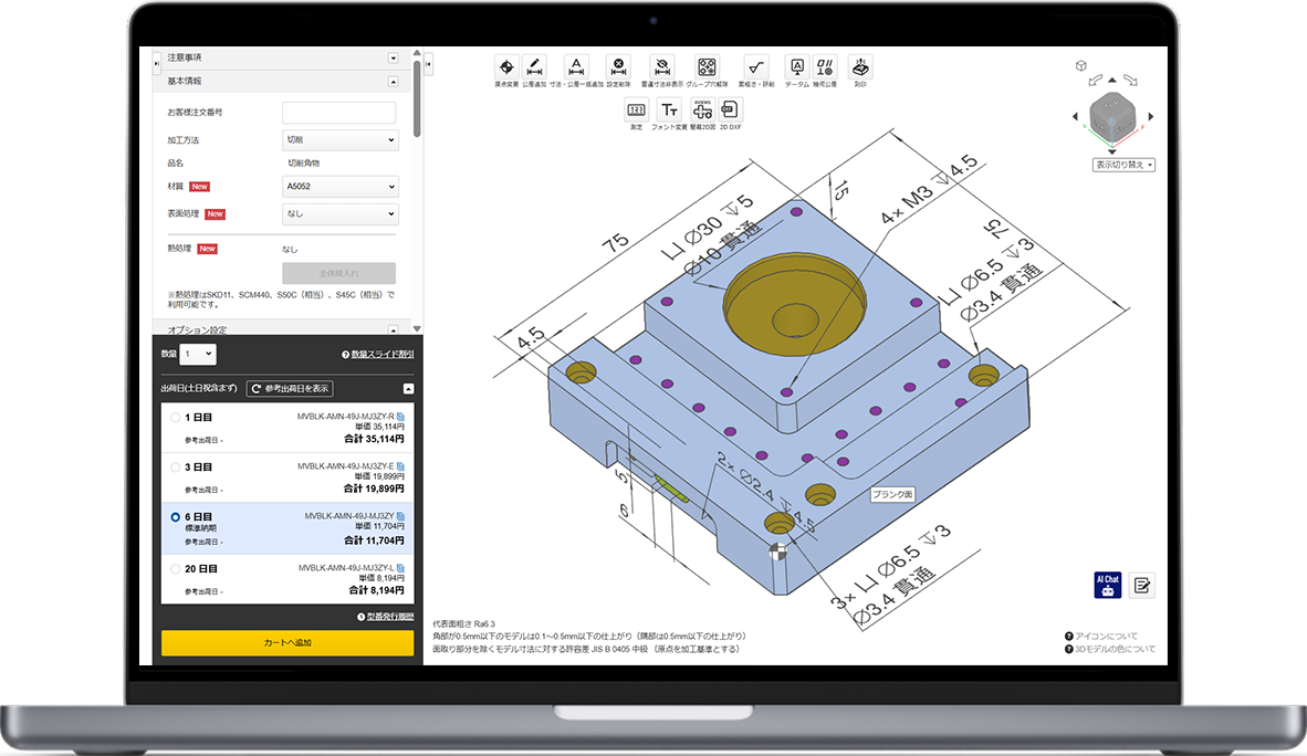 3D CADデータをアップロードするだけで価格と出荷日をすぐに確認。