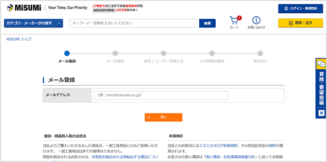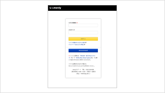 STEP1で作成したミスミ会員IDとパスワードを入力し、メビーにログインします。